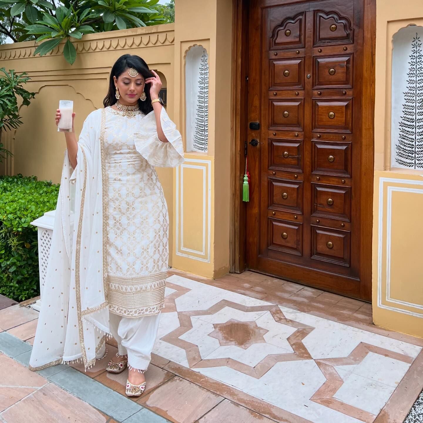 The coordinating dupatta is finished with delicate tassels along the edges, echoed by tassel accents at the hem of the salwar for a refined, cohesive touch. Perfect for intimate celebrations, festive gatherings, or elegant daytime events.
